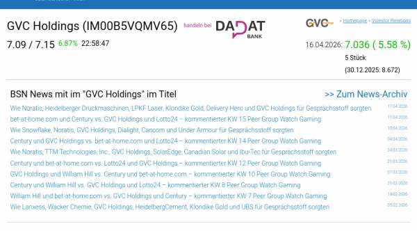 GVC Holdings am 16.4. 5,58%, Volumen 0% normaler Tage