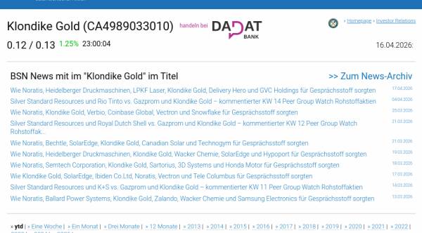 Klondike Gold am 16.4. -8,33%, Volumen 0% normaler Tage