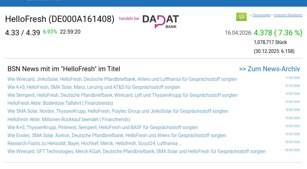 HelloFresh am 16.4. 7,36%, Volumen 90% normaler Tage