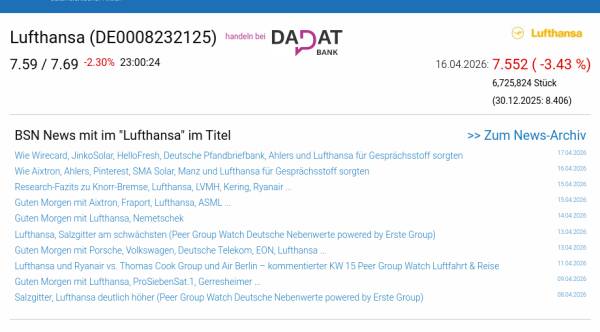 Lufthansa am 16.4. -3,43%, Volumen 118% normaler Tage