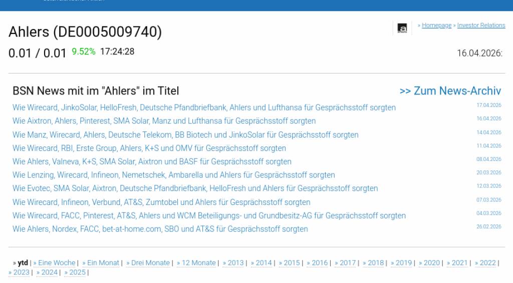 Ahlers am 16.4. -4,76%, Volumen 0% normaler Tage