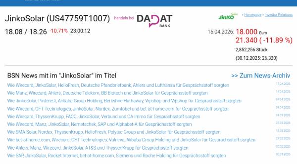 JinkoSolar am 16.4. -11,89%, Volumen 431% normaler Tage