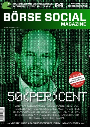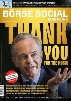 Mit der Magazine-Sammlung erhält man - aneinandergereiht - den ATX TR-Chart auf Monatsbasis. Aktuell läge der rote Balken für das neue Cover um 225 ATX TR-Punkte über jenem der jüngsten Ausgabe.
