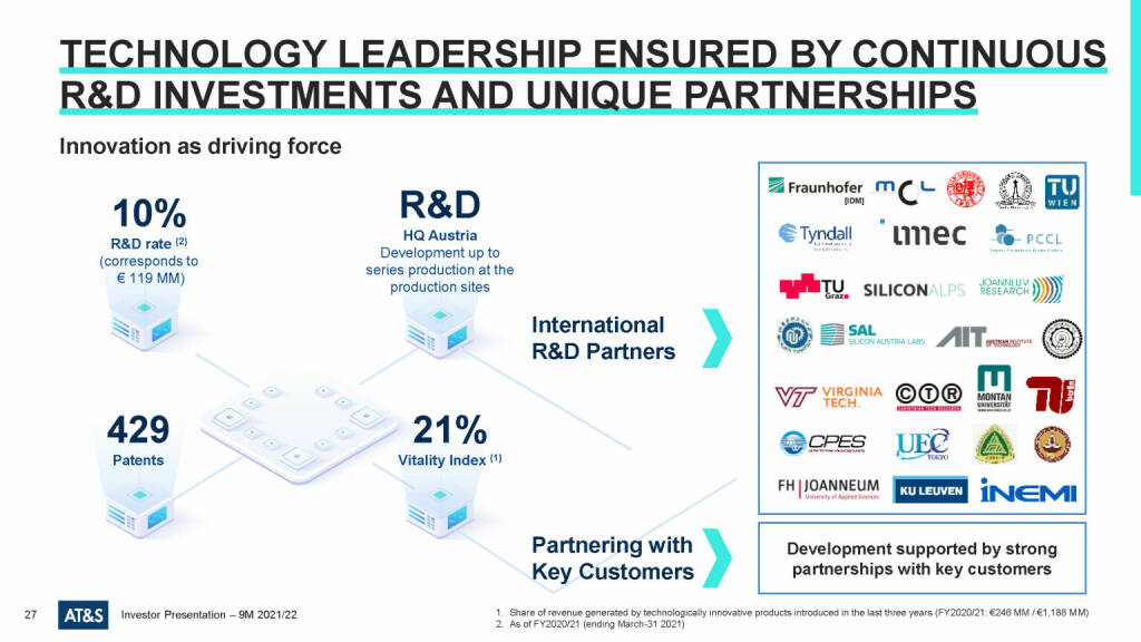 „ AT&S - Technology leadership ensured by continuous R&D investments and unique partnerships “