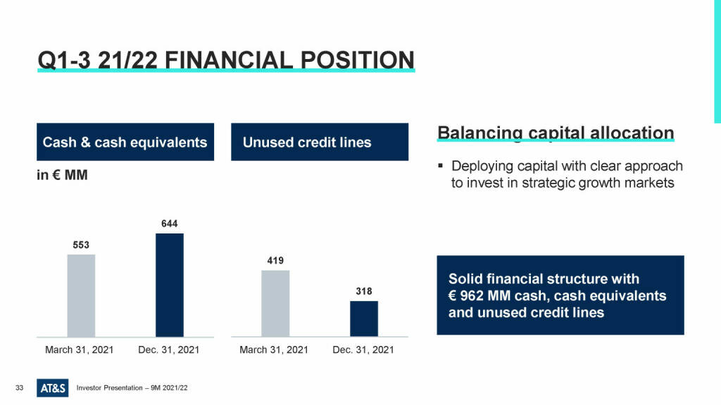 „ AT&S - Q1-3 21/22 financial position “