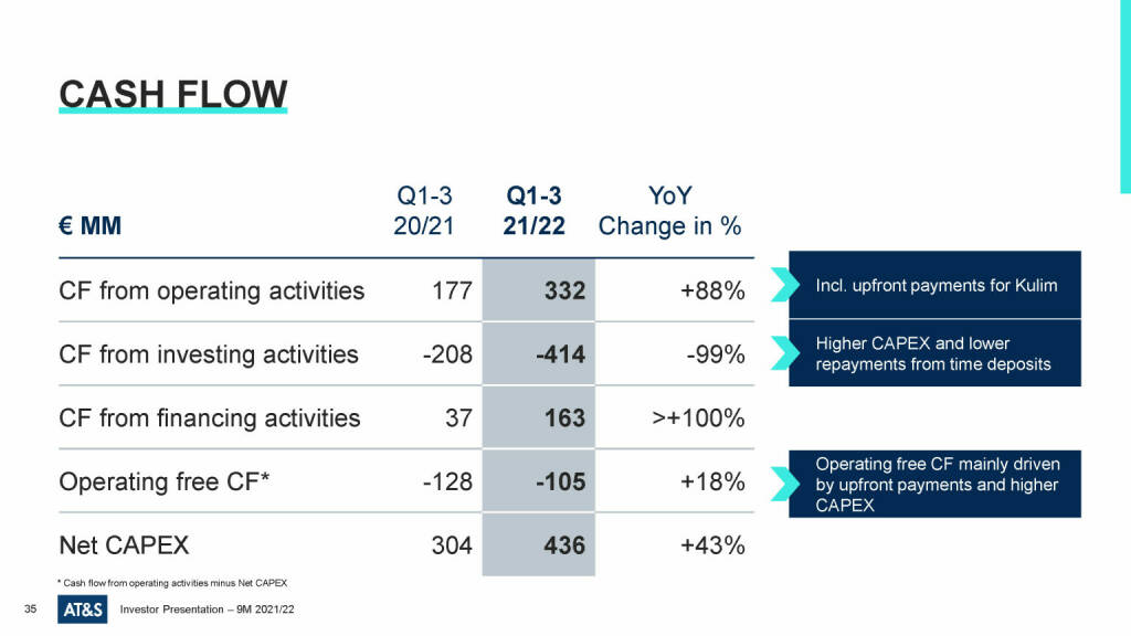 „ AT&S - Cash flow “