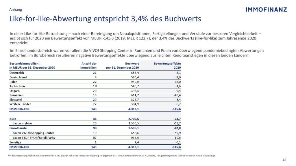 Immofinanz - Like-for-like-Abwertung entspricht 3,4% des Buchwerts
