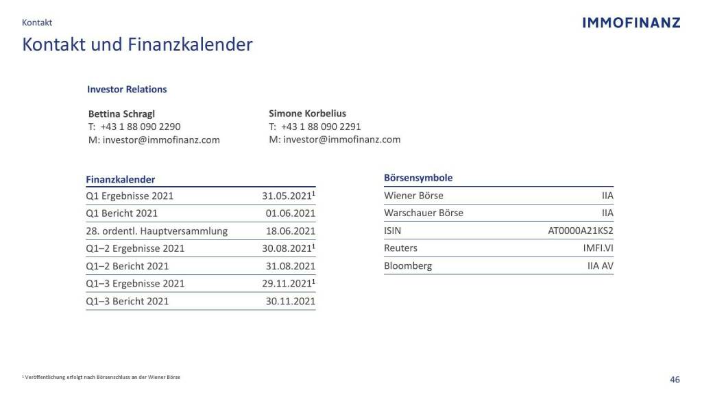 Immofinanz - Kontakt und Finanzkalender