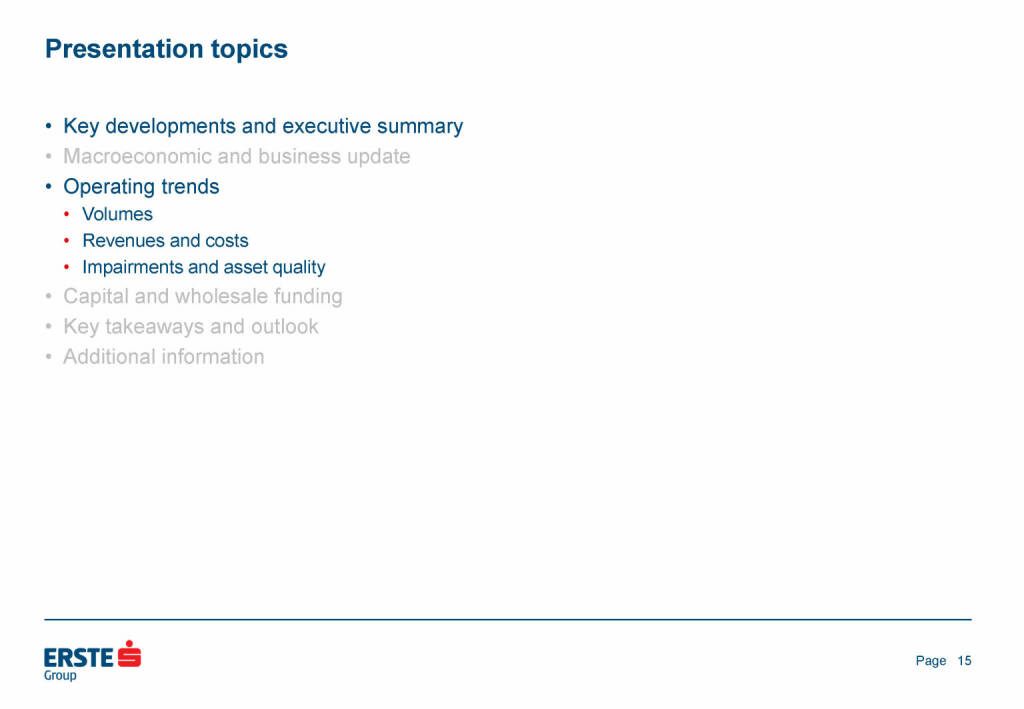 „ Erste Group - Presentation topics “