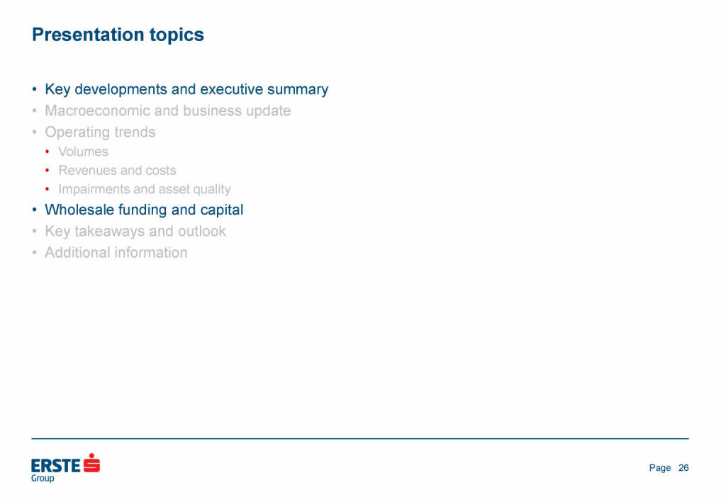 „ Erste Group - Wholesale funding and capital: LT funding “