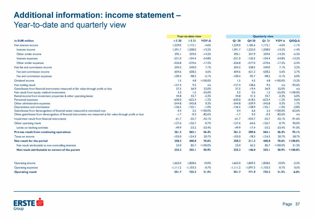 „ Erste Group - Additional information: income statement “