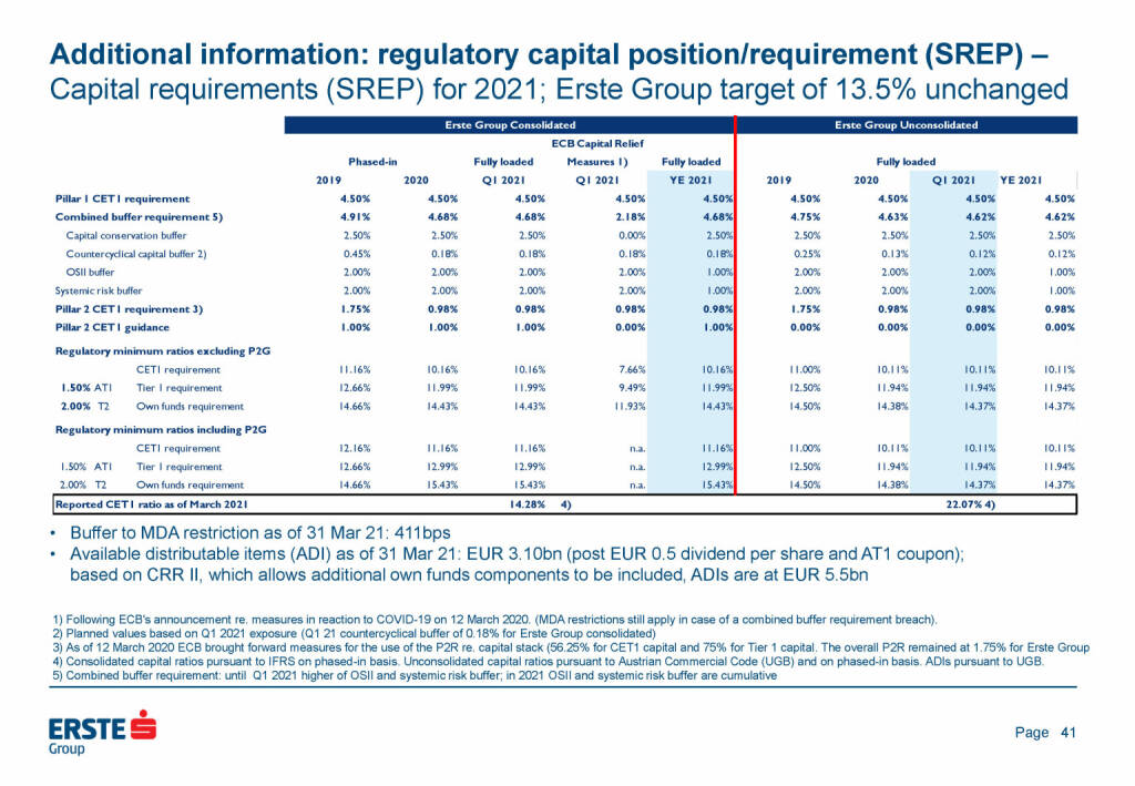 „ Erste Group - Additional information: regulatory capital position/requirement “