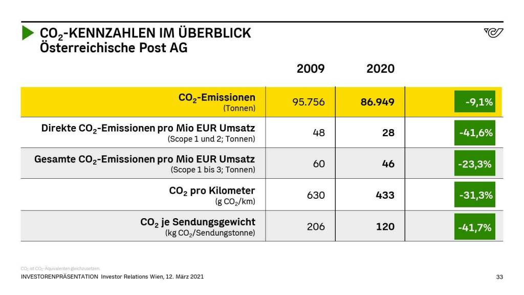 „ Österreichische Post - CO2-KENNZAHLEN IM ÜBERBLICK “