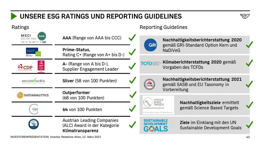 „ Österreichische Post - UNSERE ESG RATINGS UND REPORTING GUIDELINES “