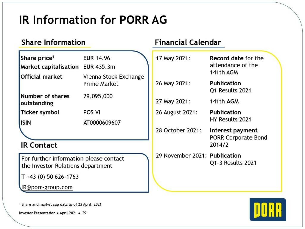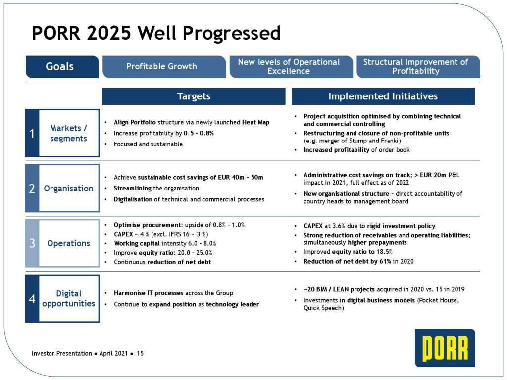 „ Porr - Balance sheet goals achieved; positive free cash flow generation “