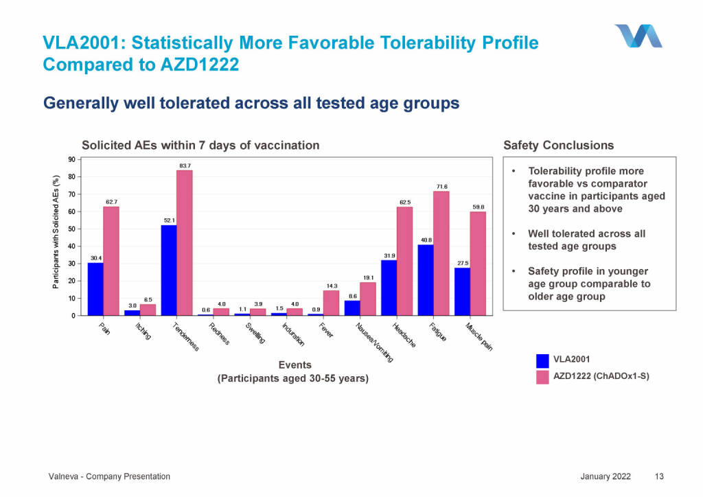 „ Valneva - VLA2001: Statistically More Favorable Tolerability Profile Compared to AZD1222 “