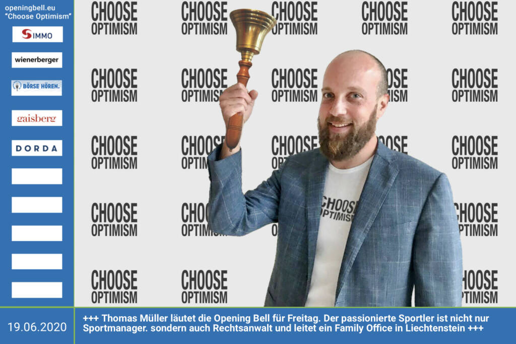 19.6.: Thomas Müller läutet die Opening Bell für Freitag, Long Distance Style (vorher/nachher unter https://photaq.com//page/index/3781). Der passionierte Sportler ist nicht nur Sportmanager, sondern auch Rechtsanwalt und leitet ein Family Office in Liechtenstein mehr Infos unter http://www.openingbell.eu mehr Choose Optimism: https://boerse-social.com/category/choose_optimism https://www.facebook.com/chooseoptimism/