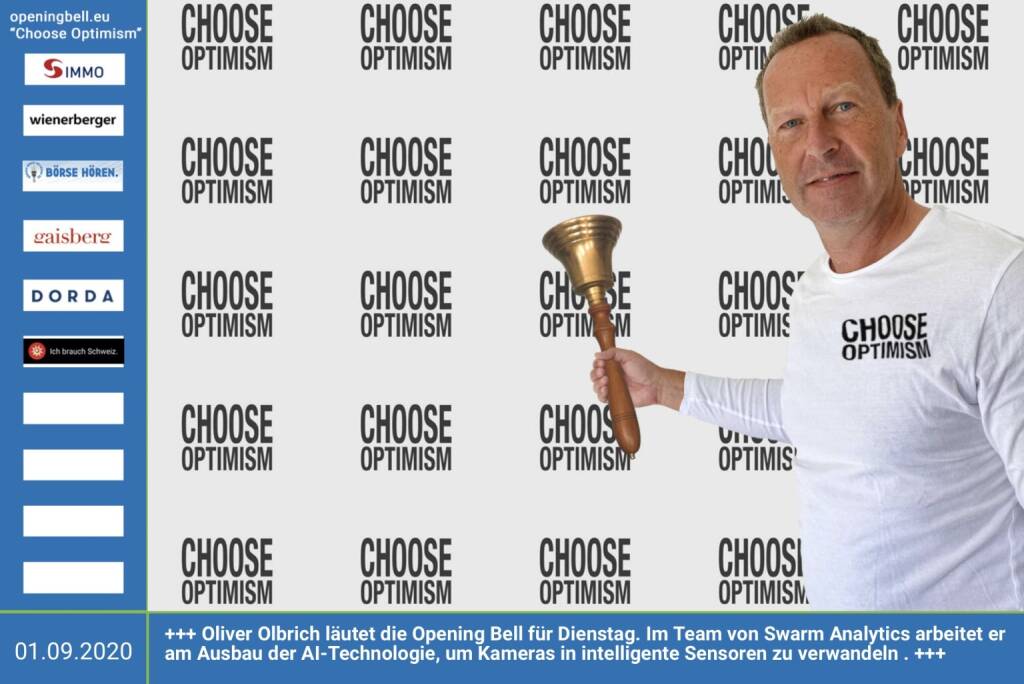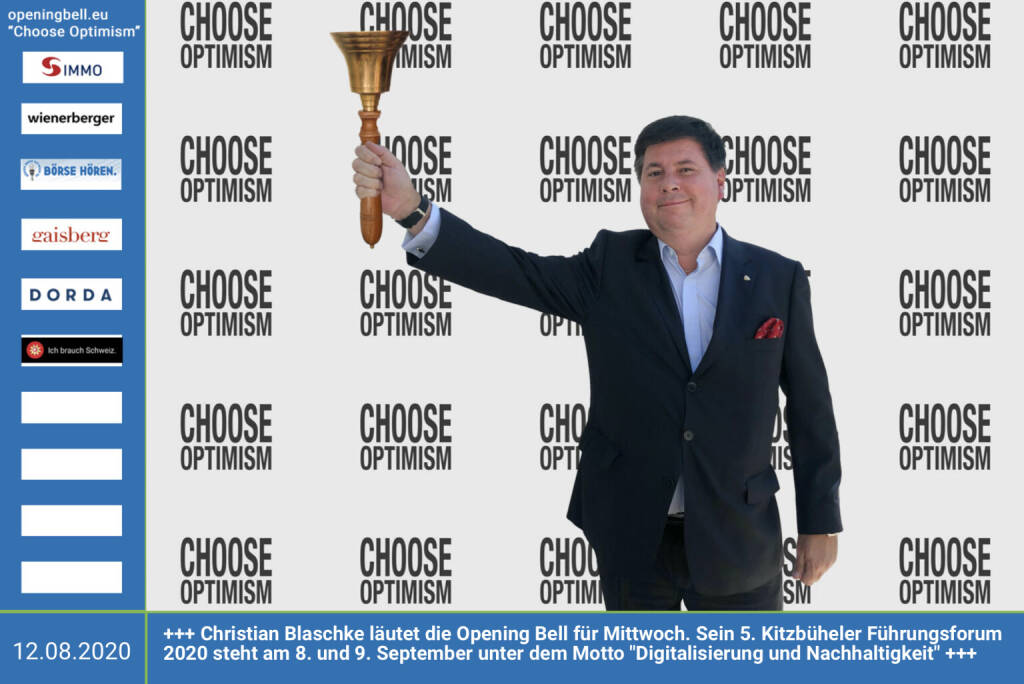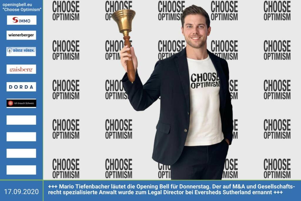 31.7.: Dominik Leiter läutet die Opening Bell für Freitag (Long Distance Style, vorher/nachher unter https://photaq.com//page/index/3781). Der Counsel und Coach mit Herz hat auch Kapitalmarkthistorie. Und er ist einer von den Weisenheimern http://www.weisenheimer.law http://www.openingbell.eu mehr Choose Optimism: https://boerse-social.com/category/choose_optimism https://www.facebook.com/chooseoptimism/