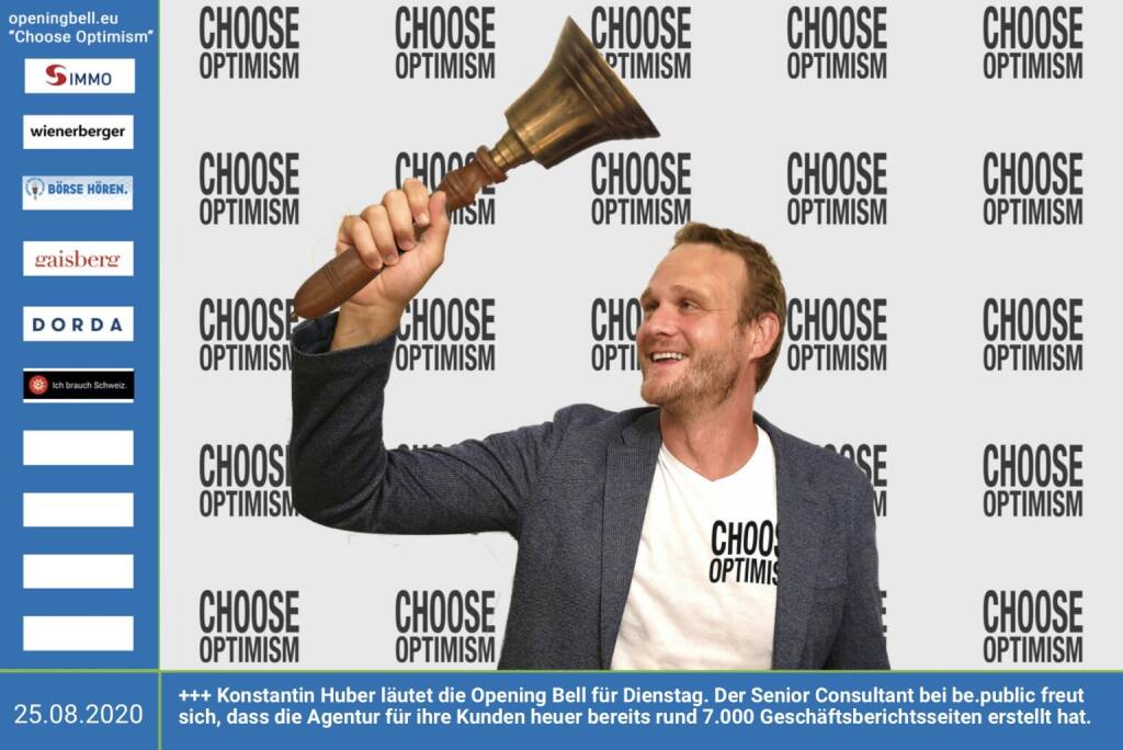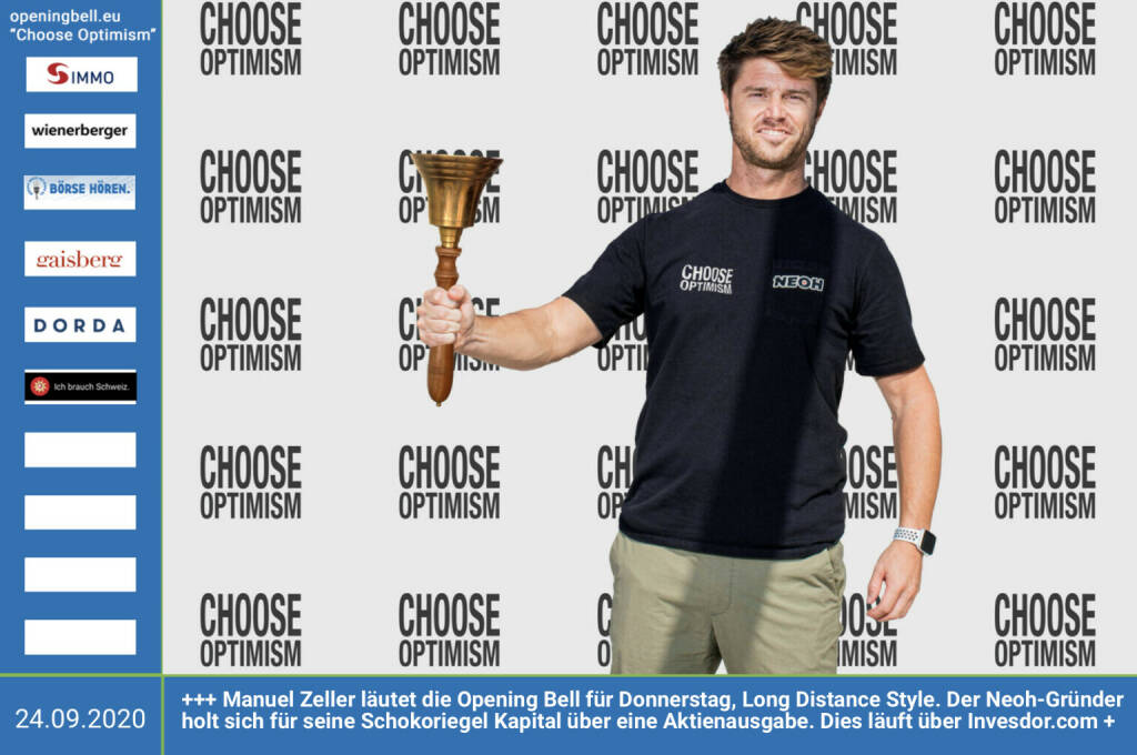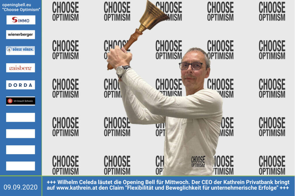 9.7.: Stefan Neubauer läutet die Opening Bell für Donnerstag, Long Distance Style (vorher/nachher unter https://photaq.com//page/index/3781). Der Vorstand der Kathrein Privatbank gibt im Börse Social Magazine wieder einen ausführlichen Quartalsrückblick mit vielen Einblicken ins Privatbank-Geschäft http://kathrein.at mehr Infos unter http://www.openingbell.eu mehr Choose Optimism: https://boerse-social.com/category/choose_optimism https://www.facebook.com/chooseoptimism/