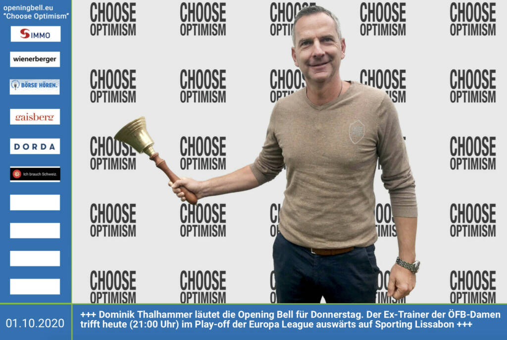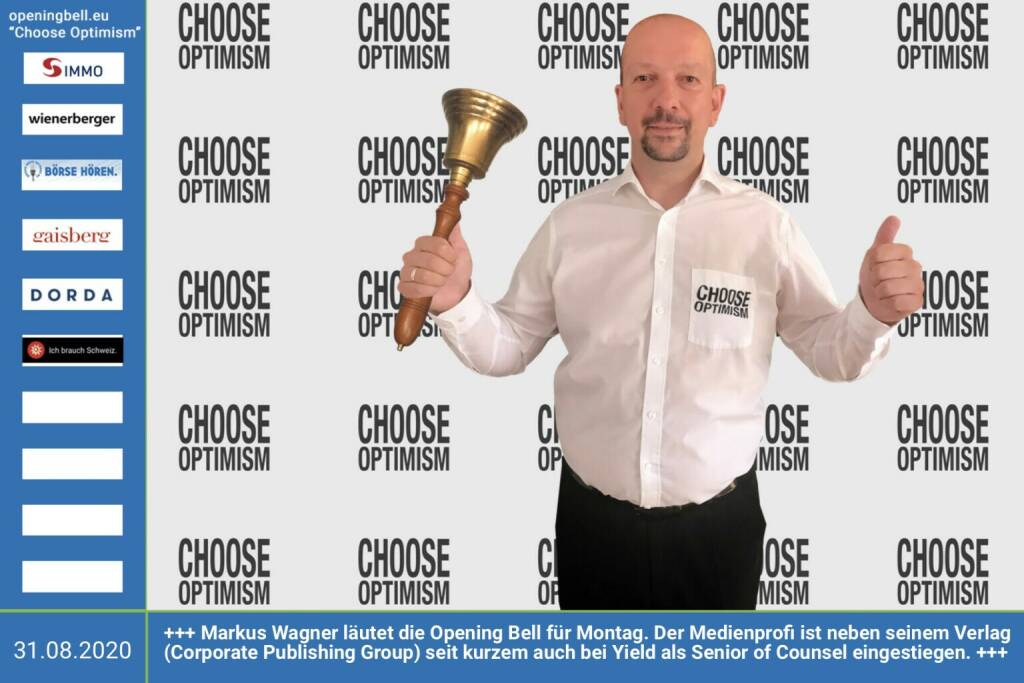 30.6.: Thomas „Juri“ Juranitsch läutet die Opening Bell für Dienstag, Long Distance Style (vorher/nachher unter https://photaq.com//page/index/3781). Der Druckerei-Besitzer und Co-Founder des „Tuesday 4Club“ im U4 freut sich auf entspanntere Zeiten https://www.juranitsch.com http://tuesdayclub.com mehr Infos unter http://www.openingbell.eu mehr Choose Optimism: https://boerse-social.com/category/choose_optimism https://www.facebook.com/chooseoptimism/