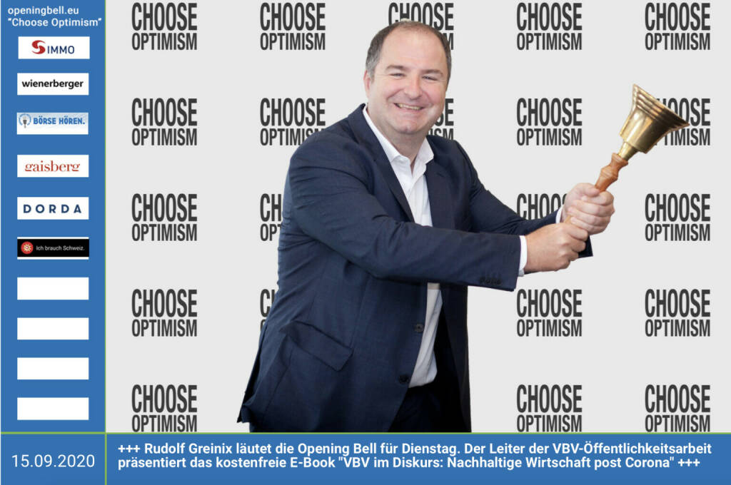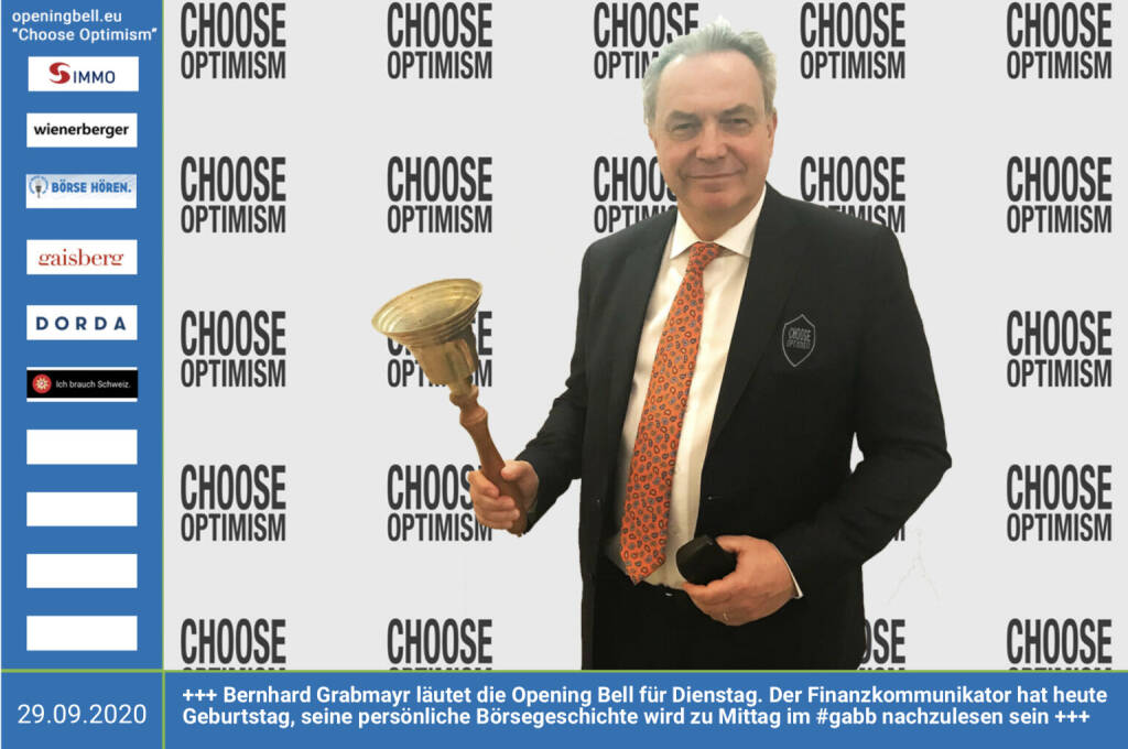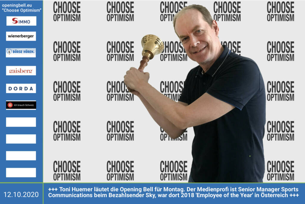 15.5.: Johann Schwetz läutet die Opening Bell für Freitag, Long Distance Style (vorher/nachher unter https://photaq.com//page/index/3781).. Der Gastronom sperrt heute http://gasthaus-hansi.at wieder auf und hat das Fendrich-Cover "Weu sonst Wirtn aussterbn wern (Covid 19 Maßnahmen)" auf Youtube veröffentlicht https://www.youtube.com/watch?v=KfCuogwCZsg&feature=yo... mehr Infos unter http://www.openingbell.eu mehr Choose Optimism: https://boerse-social.com/category/choose_optimism https://www.facebook.com/chooseoptimism/