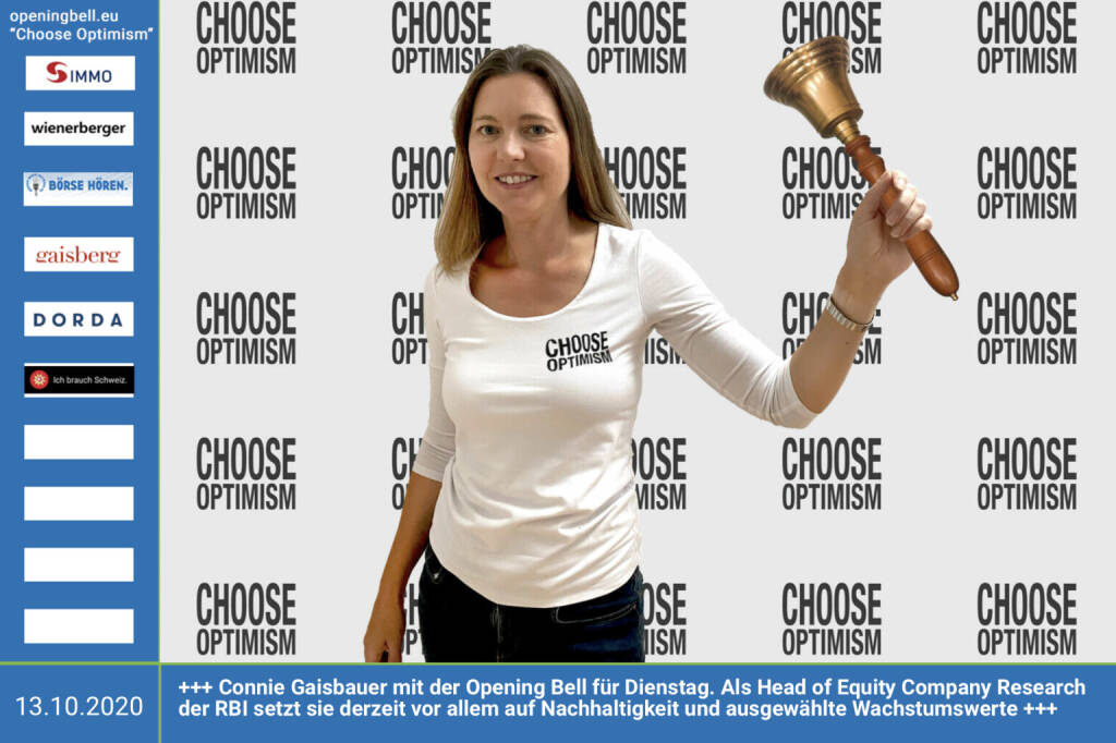 7.4.: Valerie Brunner läutet die Opening Bell für Dienstag, Long Distance Variante (vorher/nachher unter https://photaq.com//page/index/3781 ). Ihr Know How als Group Head of Institutional Clientsbei der RBI ist dieser Tage besonders gefragt https://www.rbinternational.com mehr Infos unter http://www.openingbell.eu mehr Choose Optimism: https://boerse-social.com/category/choose_optimism https://www.facebook.com/chooseoptimism/