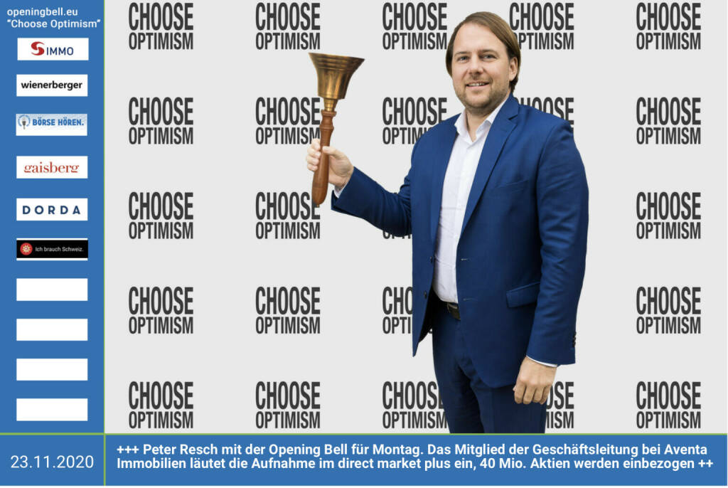 22.5.: Johann Aschauer läutet die Opening Bell für Freitag, Long Distance Style (vorher/nachher unter https://photaq.com//page/index/3781). Der Mühlviertler Unternehmer legt die Vermögens-Pool-Anleihe „The House“ auf, die ökologisches und CO2 freies Mieten erlaubt mehr Infos unter http://www.openingbell.eu mehr Choose Optimism: https://boerse-social.com/category/choose_optimism https://www.facebook.com/chooseoptimism/