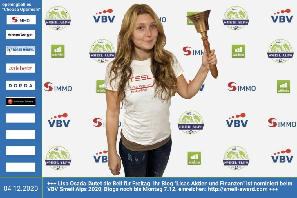 9.2.: Alexandra Rosinger läutet die Opening Bell für Dienstag. Beim VBV Smeil Alps 2020 hat ihr Blog "FinancialRedHead" den dritten Platz in der Kategorien "Einzel" gewonnen - Gratulation! https://www.financialredhead.com/blog http://smeil-award.com http://vbv.at