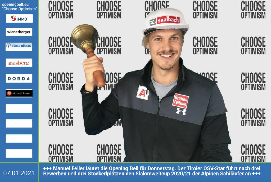 17.2.: Andreas Vojta läutet die Opening Bell für Mittwoch. Beim "Herkulis 5km Run" in Monaco stellte er am Wochenende mit 13:49 neuen Österreichischen Rekord im 5km Strassenlauf auf, siehe https://www.youtube.com/watch?v=BwcQ5bM5Oiw http://www.sportgeschichte.at - mehr Choose Optimism: https://boerse-social.com/category/choose_optimism https://www.facebook.com/chooseoptimism