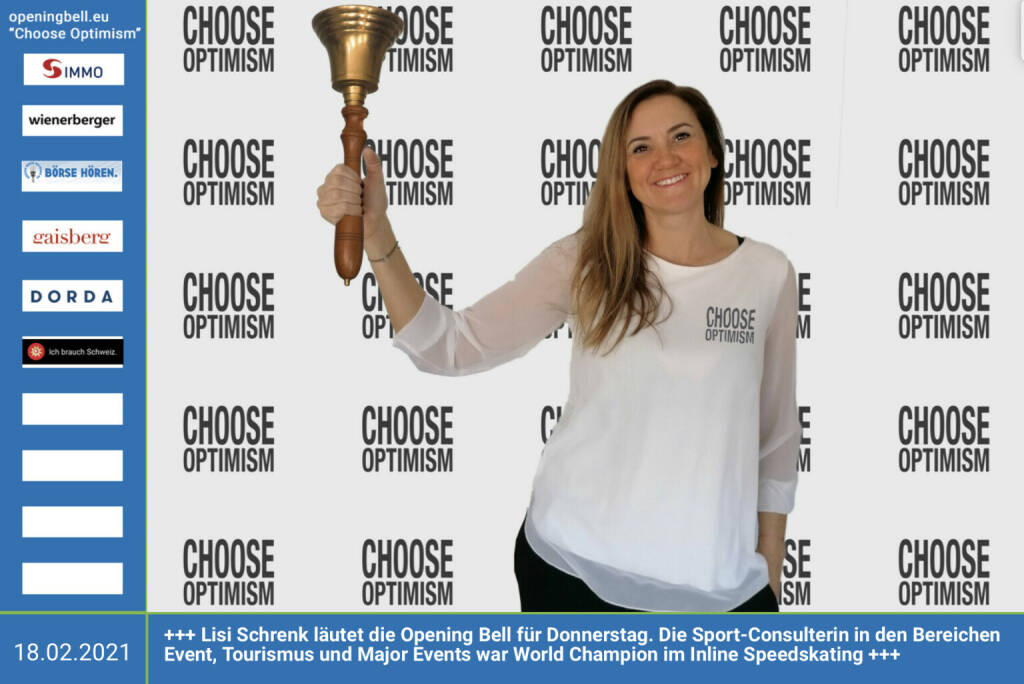 18.2.: Lisi Schrenk läutet die Opening Bell für Donnerstag. Die Sport-Consulterin in den Bereichen Event, Tourismus und Major Events war World Champion im Inline Speedskating http://www.sportgeschichte.at - mehr Choose Optimism: https://boerse-social.com/category/choose_optimism https://www.facebook.com/chooseoptimism
