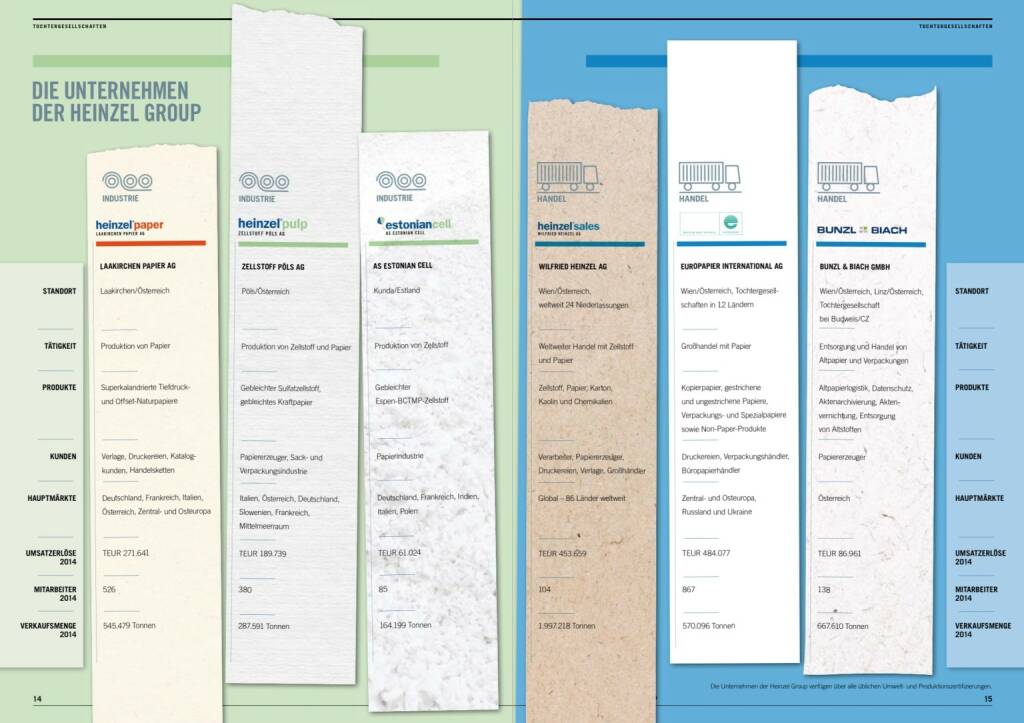 "Zellstoff, Papier und Kartonhandel, Zellstoff und Papierproduktion, 86 Märkte, rund 2.100 Mitarbeiter, 1 Mio. Tonnen Produktion"