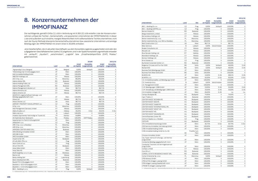 Hinten of book 'Bericht Geschäfts - Immofinanz Geschäftsb...