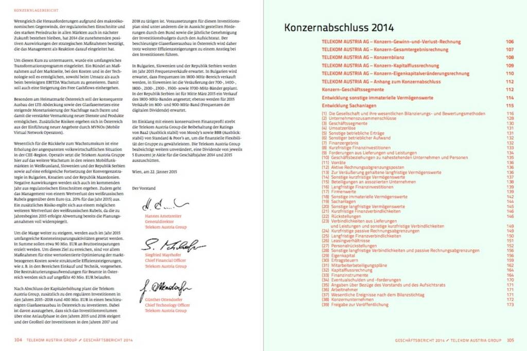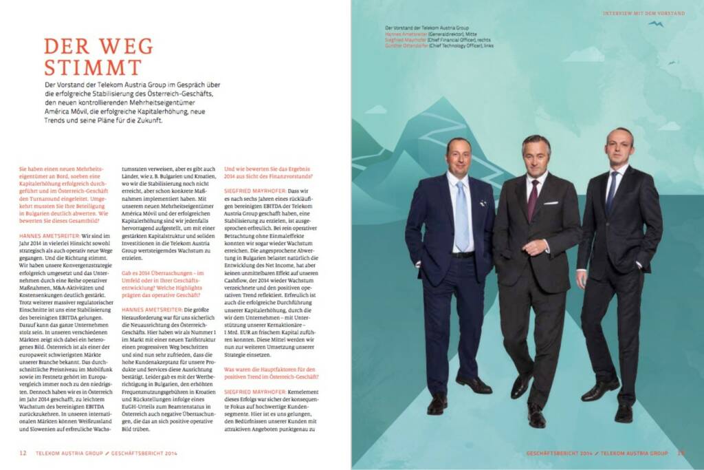 Sample page 4 for "Telekom Austria Group Geschäftsbericht 2014 - Der Weg stimmt - Vorstand"
