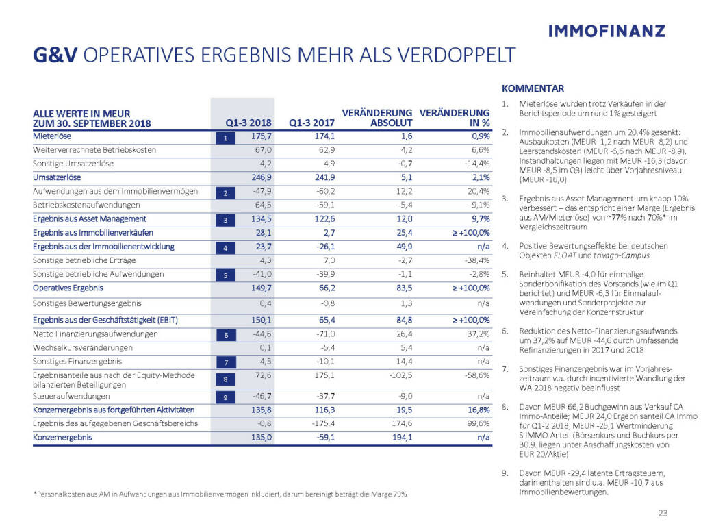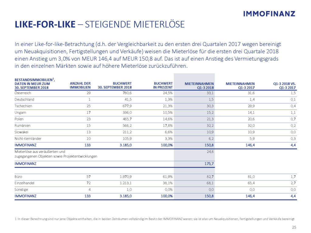 Immofinanz - Bestandsimmobilien Performance Q1-3 2018