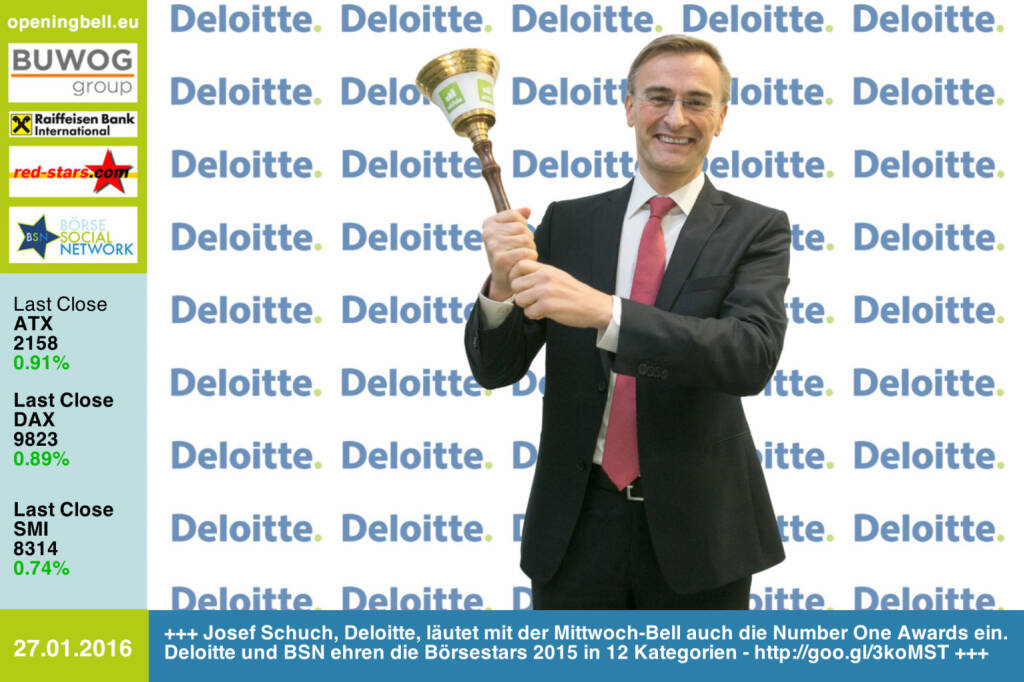 BSN Morning Xpresso (27.1.): BSN/Deloitte outen Börsebeste 2015 in 12 Kategorien mit den Number One Awards, dazu Opening Bell Josef Schuch (Deloitte)