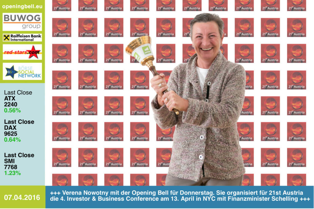 BSN Morning Xpresso (7.4.): Börsen richtungslos, Dividendenstudie Deutschland, Opening Bell Verena Nowotny für das NYC-Event mit 21st Austria und BM Schelling