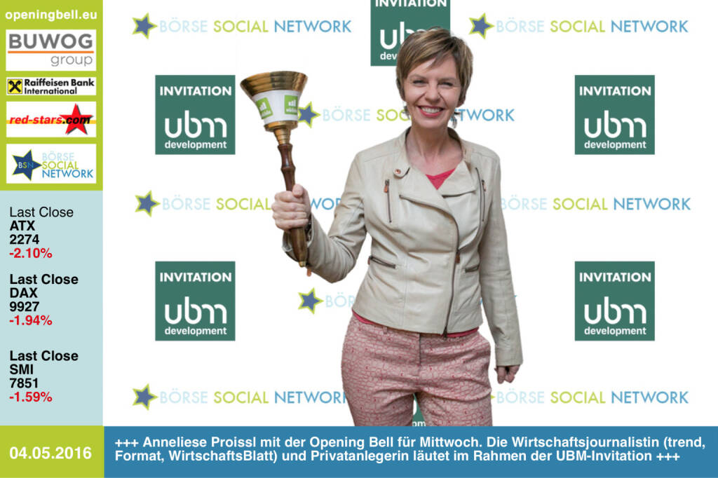 Opening Bell: Wirtschaftsjournalistin Anneliese Proissl im Rahmen der UBM-Privatanleger-Invitation .