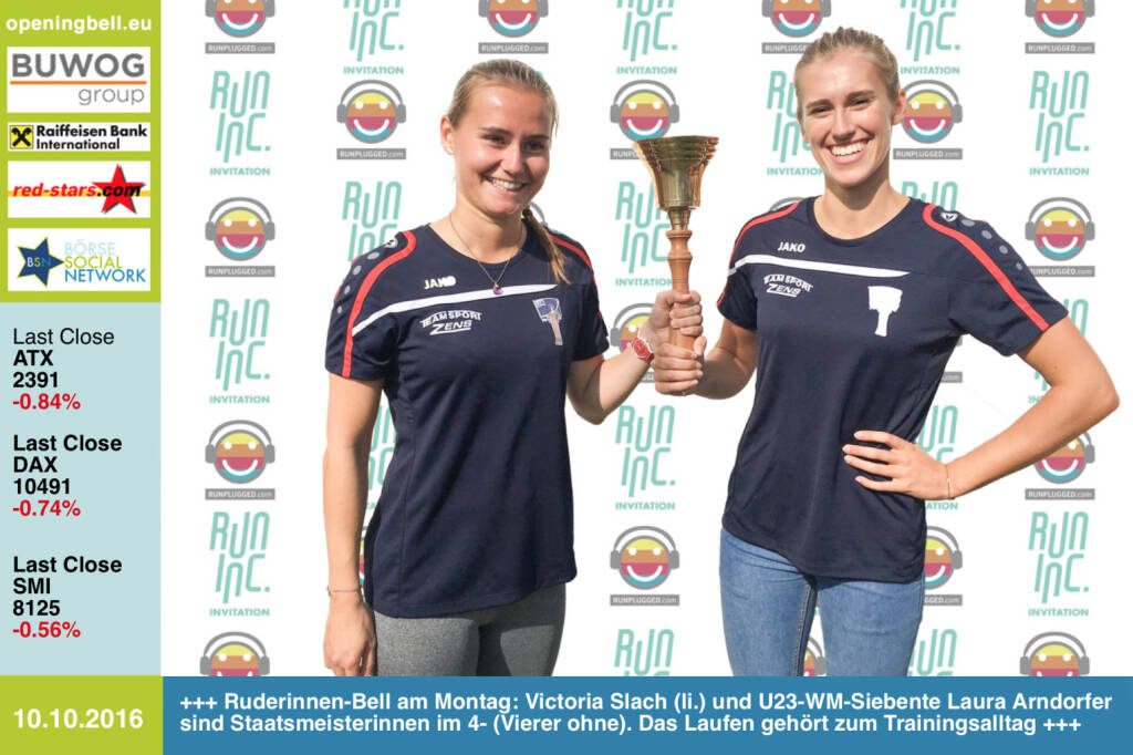 Opening Bell: Ruderinnen-Bell der U23-WM-Starterinnen am Montag: Victoria Slach (li.) und U23-WM-Siebente Laura Arndorfer sind Staatsmeisterinnen im 4- (Vierer ohne). Sie läuten im Rahmen der RunInc.-Invitation, das Laufen gehört zum Trainingsalltag http://www.runinc.at http://www.openingbell.eu http://www.runplugged.com