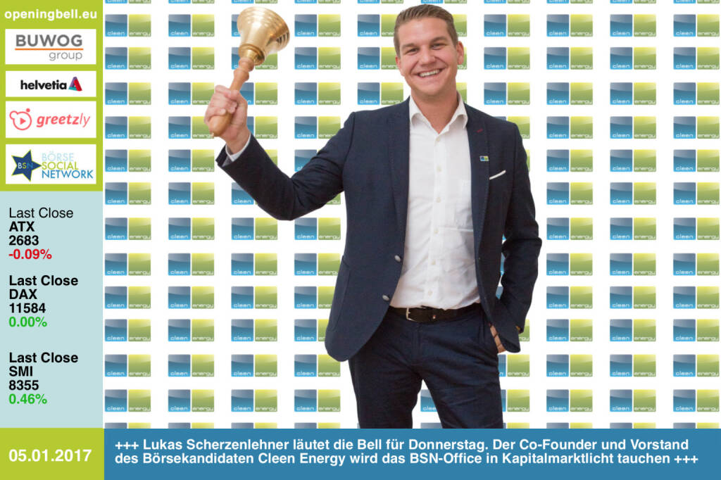 Opening Bell: Lukas Scherzenlehner läutet die Opening Bell für Donnerstag. Der Co-Founder und Vorstand des Börsekandidaten Cleen Energy wird das BSN-Office in Kapitalmarktlicht tauchen http://www.cleen-energy.com https://www.facebook.com/groups/GeldanlageNetwork/