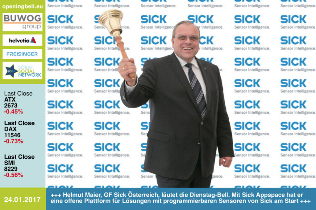 Opening Bell: Helmut Maier, Geschäftsführer Sick Österreich, läutet die Opening Bell für Dienstag. Mit Sick Appspace hat er eine offene Plattform für Lösungen mit programmierbaren Sensoren von Sick am Start http://www.sick.at https://www.facebook.com/groups/GeldanlageNetwork/