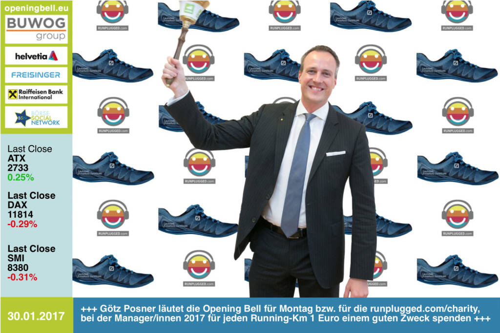 Opening Bell: Götz Posner läutet die Opening Bell für Montag bzw. für die http://www.runplugged.com/charity , bei der Manager/innen 2017 für jeden gelaufenen Kilometer 1 Euro einem guten Zweck eigener Wahl spenden https://www.facebook.com/groups/Sportsblogged https://www.facebook.com/groups/GeldanlageNetwork/