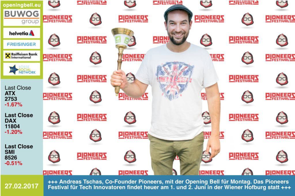 Opening Bell: Andreas Tschas, Co-Founder Pioneers, mit der Opening Bell für Montag. Das Pioneers Festival für Tech Innovatoren findet heuer am 1. und 2. Juni in der Wiener Hofburg statt http://www.pioneers.io https://www.facebook.com/groups/GeldanlageNetwork/ k/