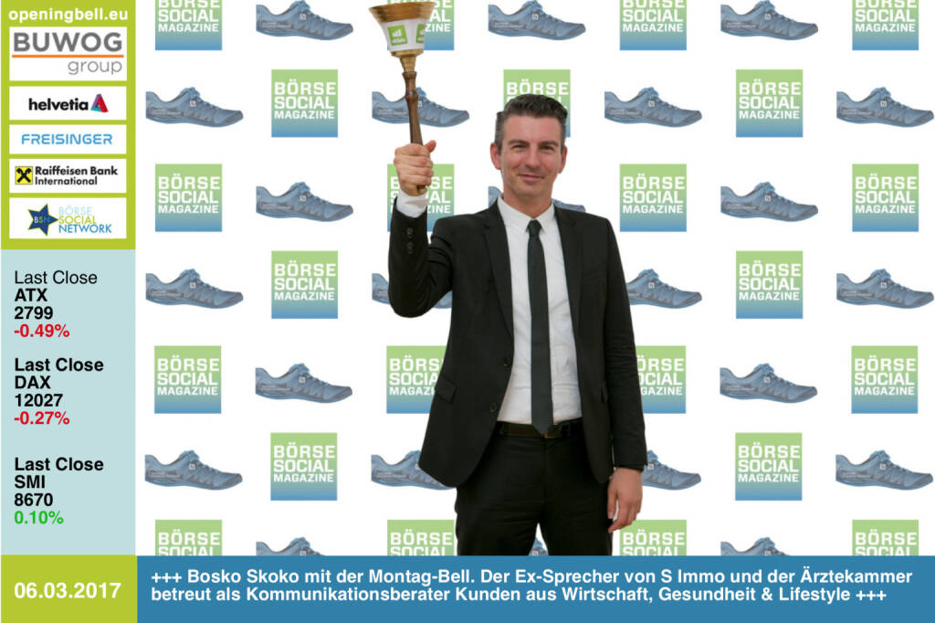Opening Bell: Bosko Skoko läiutet die Opening Bell für Montag. Der Ex-Sprecher von S Immo und der Ärztekammer betreut als selbstständiger Kommunikationsberater Kunden aus Wirtschaft, Gesundheit & Lifestyle. Ab der Ausgabe #2 des Börse Social Magazine ist er fixer Autor einer monatlichen Kolumne http://www.kommunikationsmacherei.at http://www.boerse-social.com/magazine https://www.facebook .com/groups/GeldanlageNetwork/