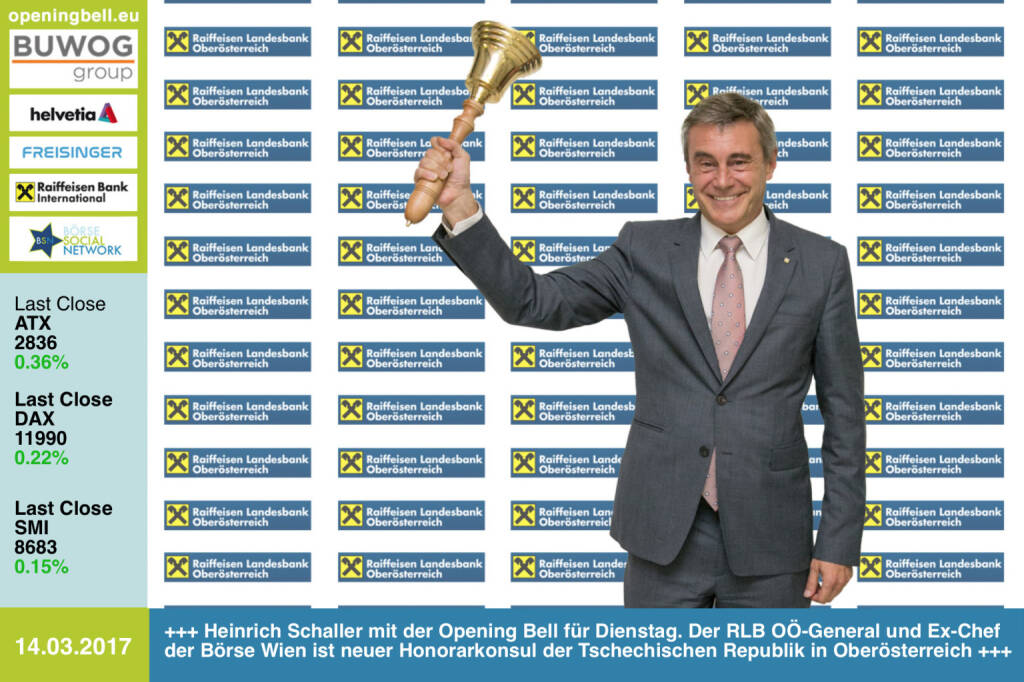 Opening Bell: Heinrich Schaller mit der Opening Bell für Dienstag. Der RLB OÖ-Generaldirektor und Ex-Chef der Wiener Börse ist neuer Honorarkonsul der Tschechischen Republik in Oberösterreich http://www.rlbooe.at https://www.facebook.com/groups/GeldanlageNetwork/