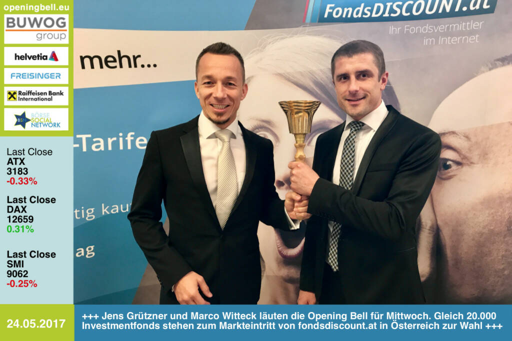 Opening Bell: Jens Grützner und Marco Witteck läuten die Opening Bell für Mittwoch. Gleich 20.000 Investmentfonds stehen zum Markteintritt von http://www.fondsdiscount.at in Österreich zur Auswahl https://www.facebook.com/groups/GeldanlageNetwork/