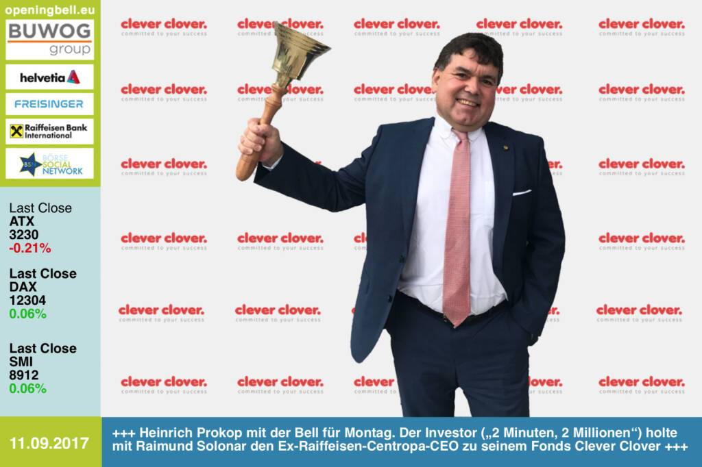 Opening Bell: Heinrich Prokop mit der Opening Bell für Montag. Der Investor („2 Minuten, 2 Millionen“) holte mit Raimund Solonar den Ex-Raiffeisen-Centropa-CEO zu seinem Fonds Clever Clover https://cleverclover.vc https://www.facebook.com/groups/GeldanlageNetwork/ #goboersewien