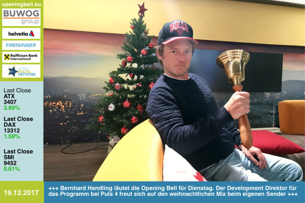 Opening Bell 19.12.: Bernhard Hendling läutet die Opening Bell für Dienstag. Der Development Direktor für das Programm bei Puls 4 freut sich auf den weihnachtlichen Mix beim eigenen Sender https://www.puls4.com/ https://www.facebook.com/groups/GeldanlageNetwork/ #goboersewien