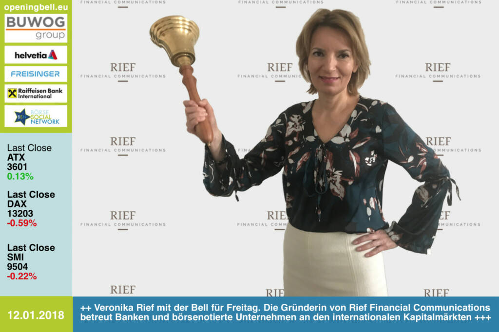 Opening Bell 12.1.: Veronika Rief läutet die Opening Bell für Freitag. Die Gründerin von Rief Financial Communications betreut Banken und börsenotierte Unternehmen an den internationalen Kapitalmärkten http://www.riefcom.athttps://www.facebook.com/groups/GeldanlageNetwork/ #goboersewien