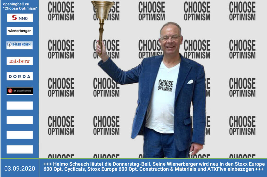 3.9.: Heimo Scheuch läutet die Opening Bell für Donnerstag. Seine Wienerberger wird zum September-Verfall neu in den Stoxx Europe 600 Opt. Cyclicals, Stoxx Europe 600 Opt. Construction & Materials und ATXFive einbezogen http://www.wienerberger.com mehr Choose Optimism: https://boerse-social.com/category/choose_optimismhttps://www. facebook.com/chooseoptimism/