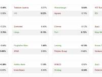 Folgende Veränderungen im ytd-Ranking: RBI (4 Plätze gutgemacht, von 16 auf 12) ; dazu, DO&CO (-3, von 12 auf 15), Erste Group (+1, von 5 auf 4), Andritz (-1, von 4 auf 5), Bawag (+1, von 9 auf 8), S Immo (-1, von 8 auf 9), Uniqa (+1, von 14 auf 13), Verbund (-1, von 13 auf 14), Immofinanz (-1, von 15 auf 16). Beim Umsatz ytd-Ranking ergaben sich diese Positionsveränderungen: Aufsteiger des Tages war Mayr-Melnhof (1 Platz gutgemacht, von 20 auf 19) , weiters VIG (-1, von 19 auf 20)